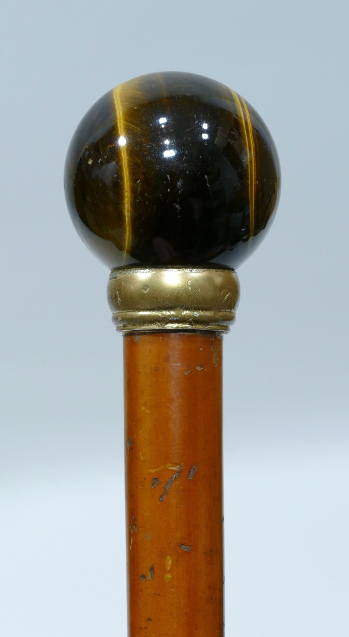 Gold ring decorated with foliage, Malacca shaft with gold passage strap and brass ferule.
